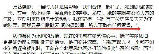 不过于莉也没有忽略这个“普通”摄影师炽烈的目光,虽然张艺谋没有开口,开朗大方的她还是主动上前和他成了好朋友。