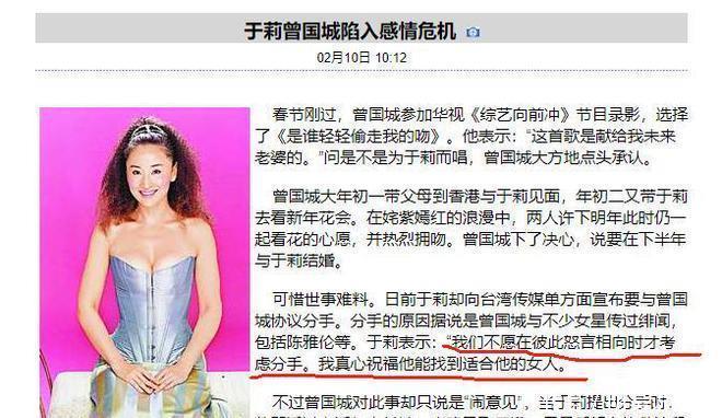 据说是因为曾国城始终没有改掉拈花惹草的毛病,于莉忍无可忍直接分手。